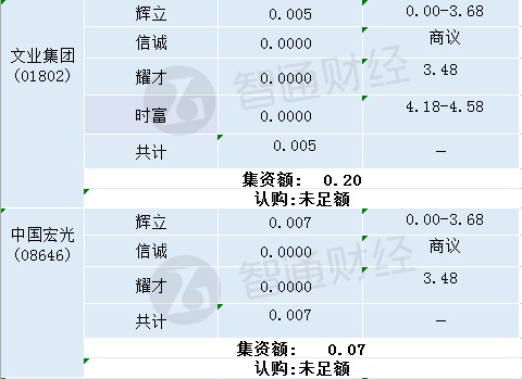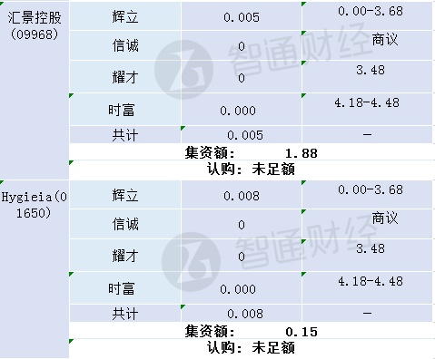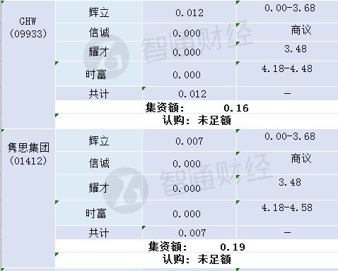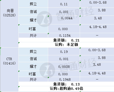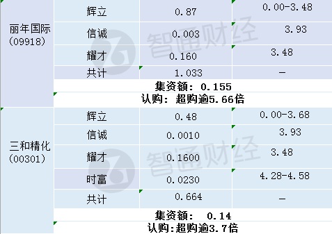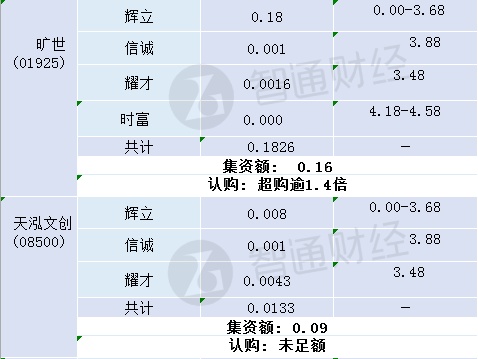 其中九毛九超购逾94倍,新石文化超购逾260倍,丽年国际超购逾5.66倍,三和精化超购逾3.7倍,CTR超购逾0.49倍,旷世超购逾1.4倍。其余十五家未足额。