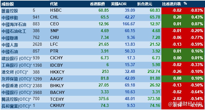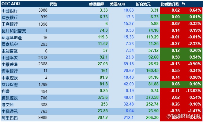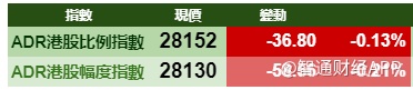 智通财经APP获悉,周二美股先跌后回稳,但港股ADR指数全日无方向,按比例计算,收报28152点,跌36.8点。