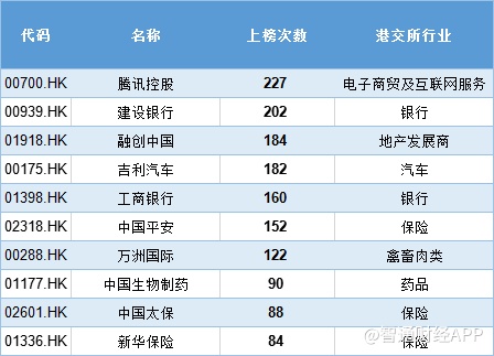 具体来看,据choice数据显示,沪港股通上榜十大活跃成交统计中,腾讯控股、建设银行、融创中国、吉利汽车、工商银行、中国平安、万洲国际7股最受沪港股通资金青睐,上榜次数均超100次。其中,腾讯控股共上榜227次,即每个沪港股通交易日都是国内资金的主要交易对象,沪港股通资金成交额占其总成交额约8.11%。