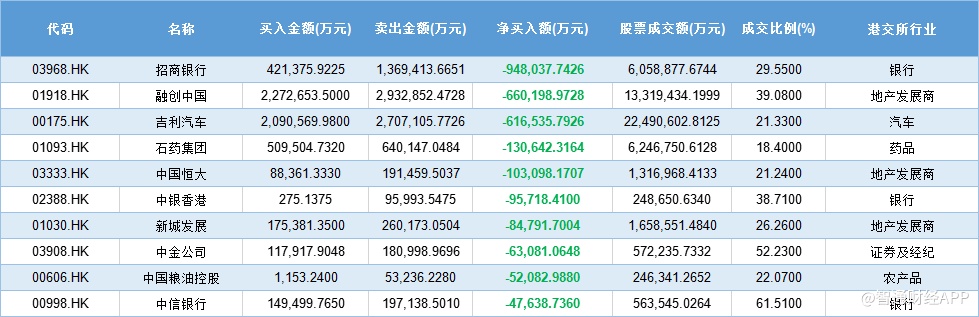 从资金动向来看,工商银行、建设银行、腾讯控股成为沪港通资金的主要买入对象,净流入额均超100亿,分别为306.86亿港元、291.78亿港元和162.68亿港元。而招商银行、融创中国、吉利汽车则为沪港通资金主要卖出对象,分别净流出94.8亿港元、66.02亿港元和61.65亿港元。