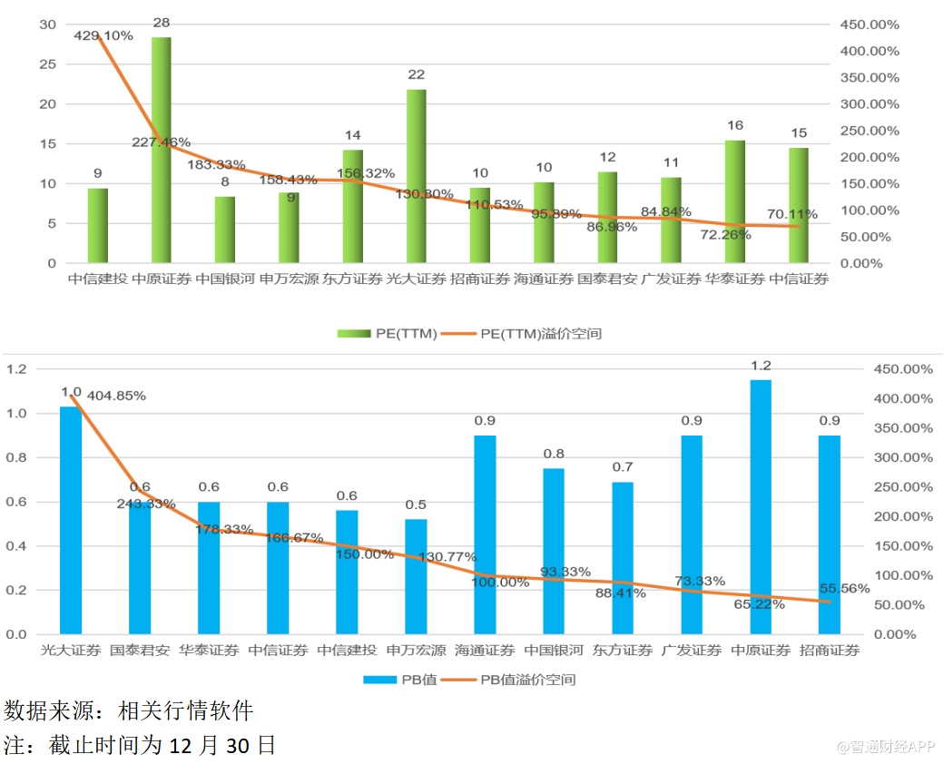 就PE(TTM)估值而言,处于券商头部的申万宏源(06806)、海通证券(06837)以及国泰君安(02611)估值相对较低,其中申万宏源PE(TTM)仅为9倍,估值溢价达158.43%。就PB估值而言,上述三家龙头估值均低于1倍,其中申万宏源及国泰君安估值分别为0.5倍及0.6倍,估值溢价均超过100%。