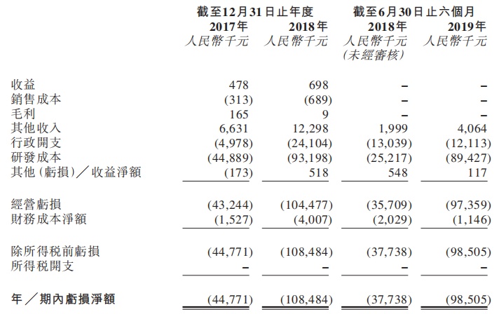 截至2017年及2018年12月31日止年度,其毛利分别为人民币16.5万元及人民币9000元。截至2018年及2019年6月30日止六个月,公司并无产生任何收益、任何销售成本或任何毛利。