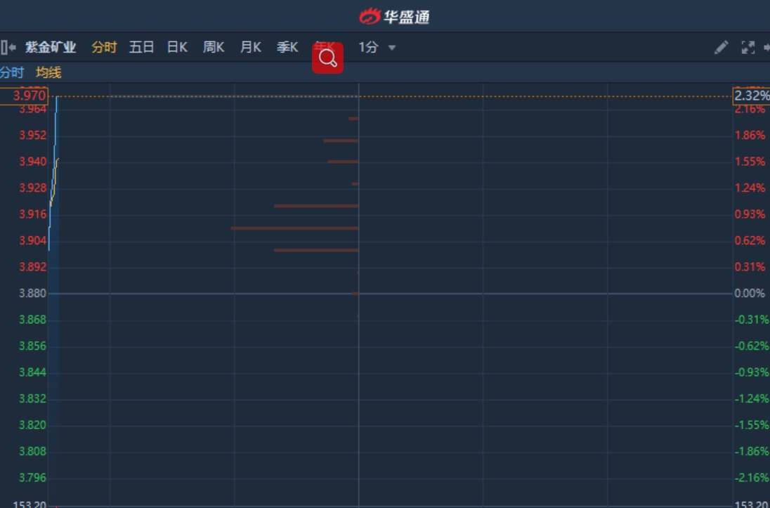 智通财经APP获悉,紫金矿业(02899)市前现2宗大手成交,每股作价3.843元及3.844元,共涉及1364.2万股,共涉资5243.3万元。截至9时34分,涨2.32%,报价3.97港元,成交额7415万。