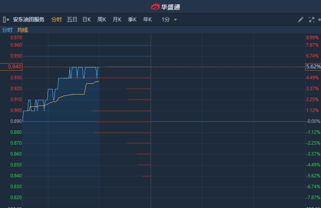 智通财经APP获悉,安东油田服务(03337)公告称,采纳限制性股票激励计划,总额将不超过现时全部已发行股份的10%。截至10时57分,涨5.62%,报价0.94港元,成交额2233.62万。