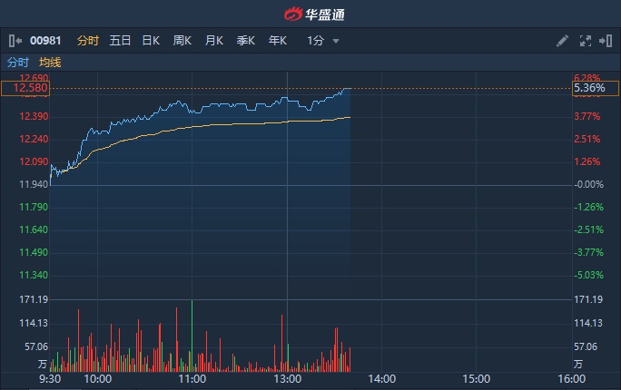 智通财经APP获悉,高盛发表研究报告,港股科技股中推介中芯国际(00981),评级为“买入”,目标价由12.8港元上调至14.5港元。截至发稿,中芯国际涨5.36%,报12.58港元,成交额7.61亿港元,股价创近两年新高。