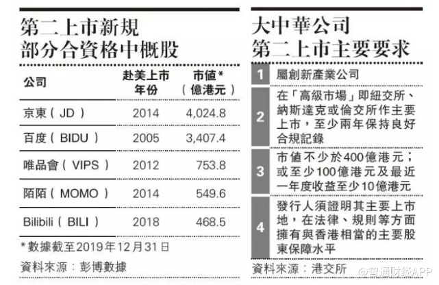 港交所设立第二上市规则已久,惟主要限于海外公司,业务重心在大中华地区的企业不能采用。直至2018年港交所修例,允许内地企业以第二上市形式在港挂牌,但门坎颇高,首先是必须在英、美等少数"高级市场"上市,其次是市值不少于400亿元,或市值不少于100亿元及最近一年度收益至少10亿元。