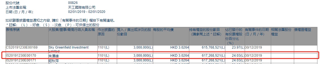 智通财经APP获悉,联交所最新资料显示,12月30日,天工股份(00826)获股东朱泽峰增持300万股,每股作价3.0264港元,总金额约为907.92万港元。增持后最新持股数目约为6.17亿股,最新持股比例为24.03%。