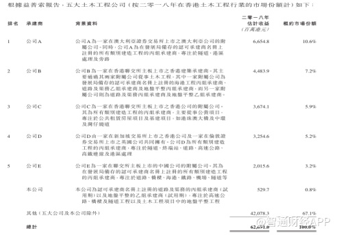 根据益普索报告,香港土木工程行业集中度较为分散,2018年五大参与者约占行业总收益的32.1%,其中市占率超过10%的公司仅有1家。就收益而言,誉燊丰占2018年香港土木工程行业总市场份额约0.8%。