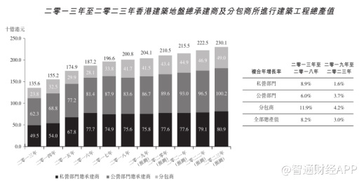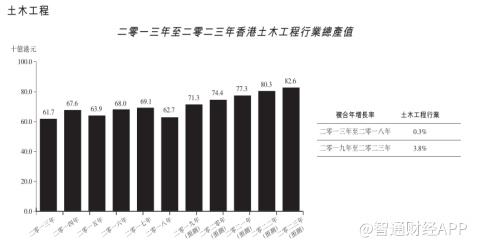 香港土木工程行业的总产值预计将由2019年的约713亿港元增至2023年的约826亿港元,复合年增长率约为3.8%。