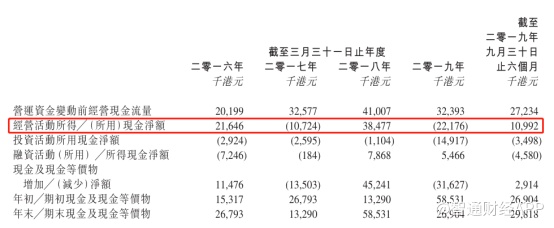 “飘忽不定”的中标数,使得公司经营性现金流出现明显的“旱涝季”。截至2016年-2019年3月31日止年度以及截至2019年9月30日止六个月,誉燊丰经营活动现金净额分别为流入2164.6万港元、流出1072.4万港元、流入3847.7万港元、流出2217.6万港元及流入1099.2万港元。
