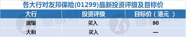 三、各大行对友邦保险(01299)最新投资评级及目标价