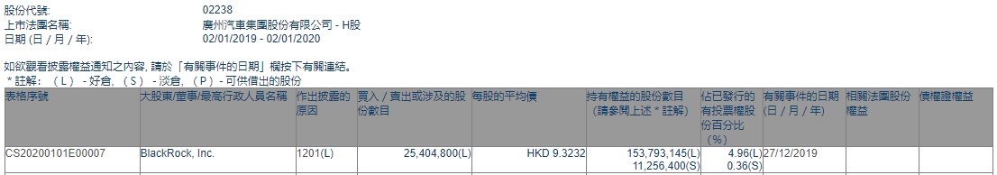 智通财经APP获悉,联交所最新资料显示,12月27日,贝莱德减持广汽集团(02238)2540万股,每股作价9.32港元,总金额约为2.37亿港元。减持后最新持股数目约为1.53亿股,最新持股比例为4.96%。