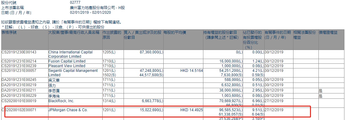 智通财经APP获悉,联交所最新资料显示,12月27日,摩根大通减持广州富力(02777)1502万股,每股作价14.49港元,总金额约为2.18亿港元。减持后最新持股数目约为9658万股,最新持股比例为9.51%。