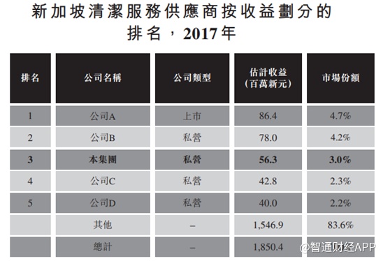 根据弗若斯特沙利文在Hygieia招股书中披露的行业数据显示,由于新加坡经济增长及寻求专业清洁服务供应商的上涨趋势,对清洁服务的需求持续上升,清洁服务的市场收入规模达到2017年的18.5亿新元(约106亿港元),并且以复合年增长率5.2%的速度持续攀升,预计2022年将达到26.9亿新元(约155亿港元)的市场规模。