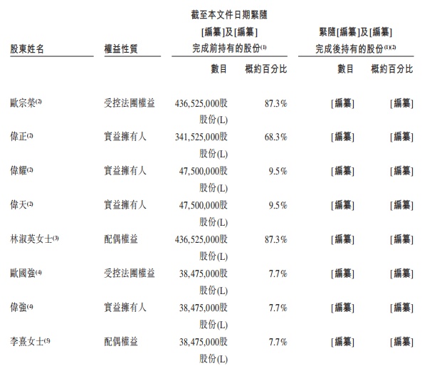 根据上市规则,伟正、伟耀、伟天及欧宗荣先生将成为正荣服务的控股股东, 伟正、伟耀及伟天由欧宗荣先生全资拥有。欧宗荣亦实益拥有正荣地产已发行股份总数的约54.6%。