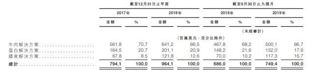 该企业产品组合分为三大支柱解决方案:牛肉解决方案、蛋白解决方案以及膳食解决方案。