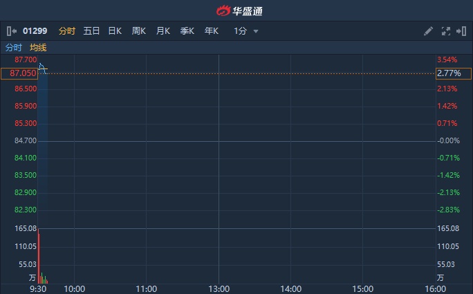 智通财经APP获悉,友邦保险(01299)将内地分公司改建为全资持股子公司。此举获大和瑞银看好。大和表示,友邦内地分支有潜在的地域扩张,子公司将是首选的工具,该行维持“买入”评级;瑞银则表示,友邦投资者已将焦点转至友邦中国长期增长,维持其“买入”。截至发稿,友邦保险涨2.72%,报87港元,成交额3.81亿港元,贡献恒指第一。