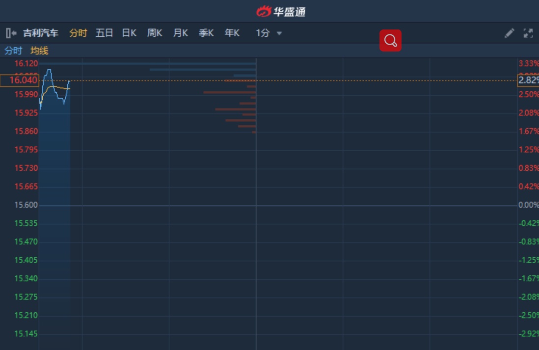 智通财经APP获悉,吉利汽车(00175)获中金看高至19.6港元,评级“跑赢大市”。该股早盘延续涨势,一度创逾八个月新高。截至9时50分,涨2.95%,报价16.06港元,成交额2.971亿。