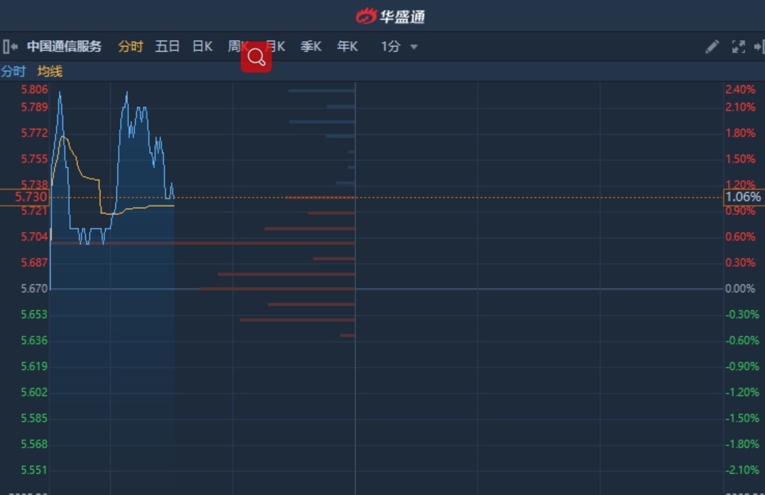 智通财经APP获悉,中国通信服务(00552)盘中现一宗大手成交,每股作价5.705元,涉及2317.16万股,涉资1.32亿元。截至10时30分,涨1.23%,报价5.74港元,成交额2.279亿。