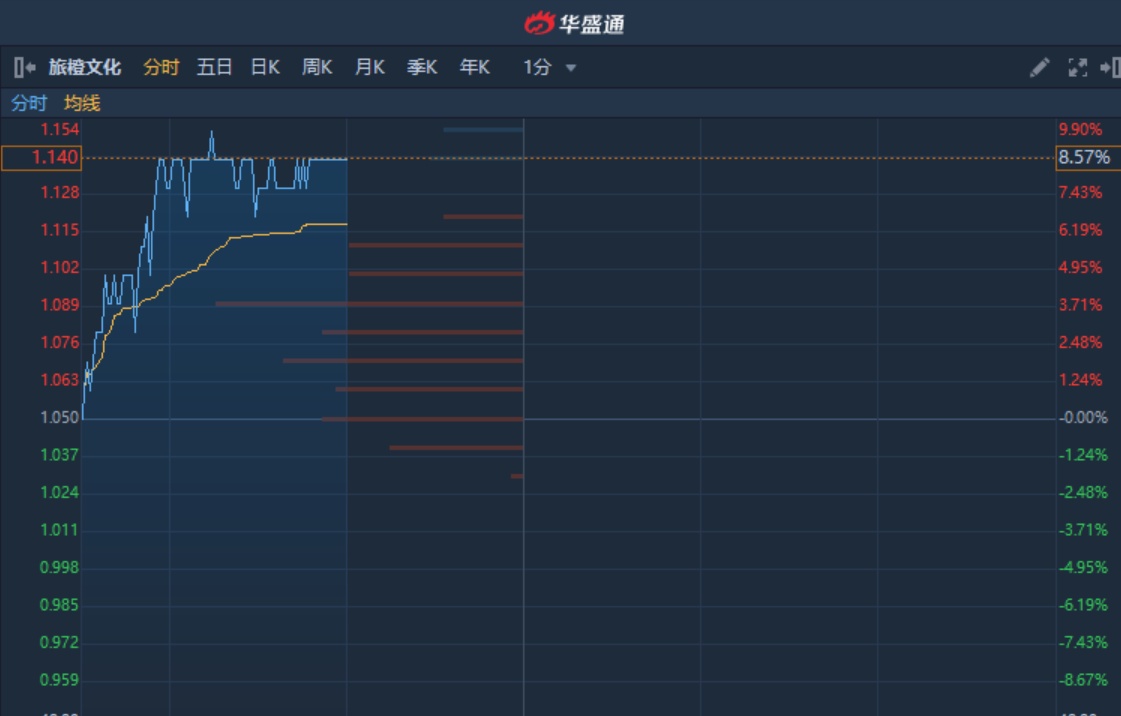 智通财经APP获悉,次新股旅橙文化(08627)盘中再次刷新上市新高,一度高见1.15港元,截至10时59分,涨8.57%,报价1.14港元,成交660.7万。值得一提的是,该股暂现三连阳,累计涨幅超25%。