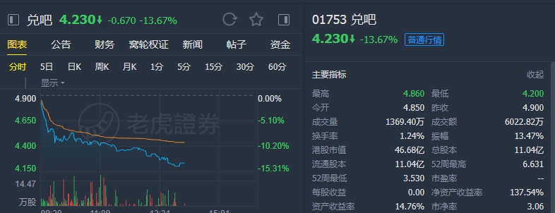 智通财经APP获悉,国泰君安发布报告称,给予兑吧(01753)“买入”评级,目标价6.17港元,潜在上升空间15.98%;该目标价对应2019/2020年预测市盈率21.3倍/8.9倍,2019/2020年预测市净率3.0倍/2.5倍。