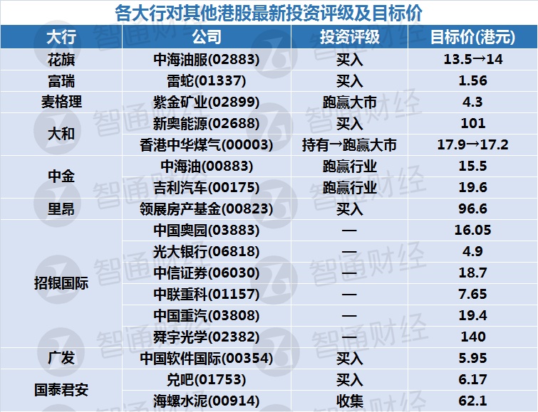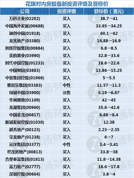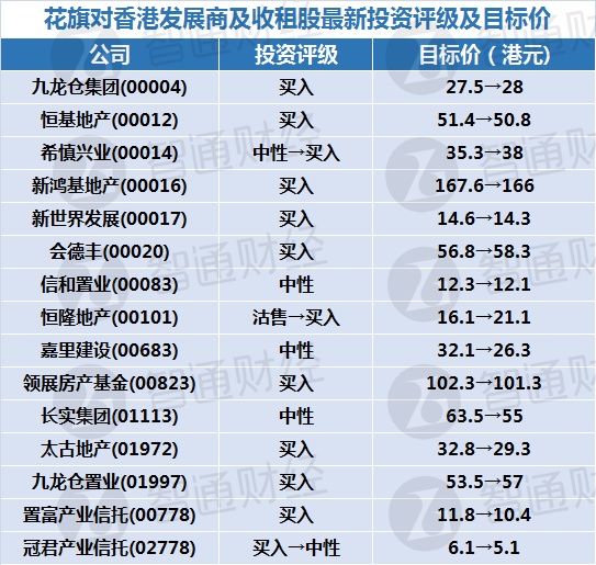 一、花旗对香港发展商及收租股最新投资评级及目标价