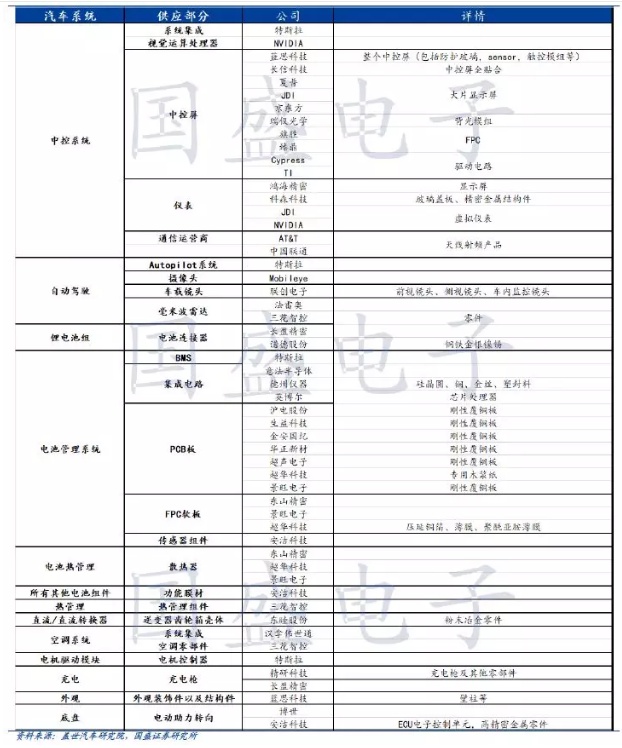 以下我们整理了关于特斯拉产业链电子相关标的的简单情况(包含但不限于以下标的):