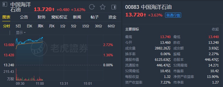 该行称,基于中东地区地缘区势紧张及油组减产,将今年石油价格预测由每桶64美元上调至65美元,而明年则由65美元升至66美元,并将中海油2020╱2021年度的产量预测由5.1╱5.4亿桶油当量,上调至5.2亿╱5.5亿桶油当量。