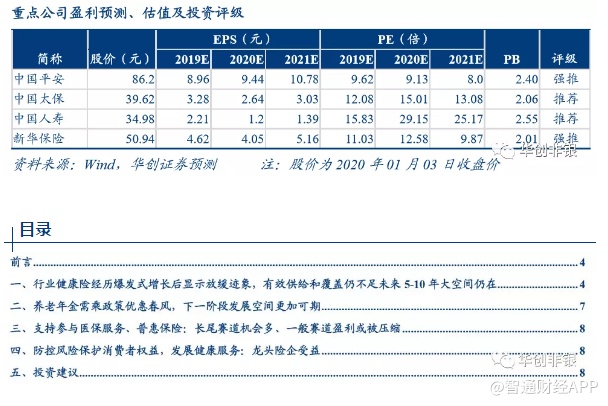 防控风险保护消费者权益,发展健康服务:龙头险企受益。在行业健康险需求快速爆发的同时,市场也面临一些风险:如有的险种定价不充分,未考虑远期风险恶化情况。此前新的《健康险管理办法》已发布,旨在对积极引导和约束行业规范有序发展。公司治理完善的龙头险企将在一个相对中期的时间内享受份额的集中。另外,《意见》和新《健康险管理办法》也着重提出要推动健康保险和健康管理服务的融合发展。目前行业健康保险与健康服务的融合尚未形成较成熟稳定的商业模式。在这方面,资本充足、主业发展成熟的龙头险企以及有先进技术和经验的外资险企较具备先发优势。