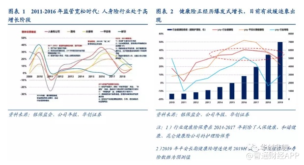 1) 监管引导、政策驱动回归保障。近两年监管驱动行业发展方向十分明显。2016年开始,保险行业实行“偿二代”监管体系,以偿付能力充足率约束保险公司的负债端业务和资产端业务,对于保障型业务给予偿付能力更小的限制,从最顶层引导各公司向保障型业务回归和倾斜。此后监管发文限制以万能险为代表的中短存续期产品和3、5年快返型年金产品,给了短期类理财型产品致命打击。行业以急转之姿回归保障型跑道,健康险是大多公司选择的主要跑道,一方面依靠其转型沉淀价值,一方面对冲保费急速下降。以上市险企为观察对象,健康险发展地位在“134号文”之后的18、19年明显提升,成为“兵家必争之地”,整体增速和占比都明显提升。以华夏人寿、天安人寿等中型公司为观察对象,2018年开始也在往健康险赛道上重点倾斜,健康险成为重要保费贡献险种,件均保费较小的健康险出现在了前5大产品名单之中。