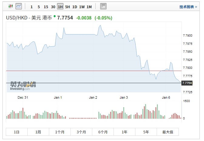 智通财经APP获悉,1月6日,港元拆息多数向下,只有1星期拆息结束之前连续4日的跌势;而港元兑美元汇价一度升至近3年来最强。港元汇价现报7.7754兑1美元,是2017年4月以来最强。