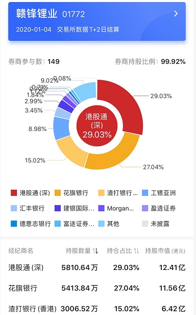 (深港通席位已经大量持有赣锋锂业H股 数据来源:智通财经APP)