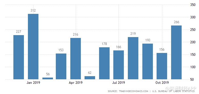 智通财经APP了解到,2019年11月美国非农就业人数新增26.6万人,此前10月份新增15.6万人,环比上涨约71%,且远高于市场预期的新增18.3万人。