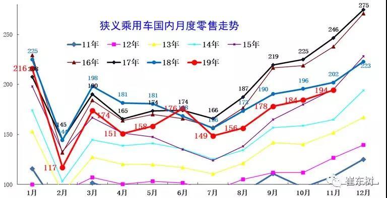 2020年前低的因素是春节因素决定的,难以改变。尤其是2018年的春节叠加2017年转移量的因素,因此2018年的1-2月基数高,2019年的车市在3月较好,但4-5月受到国六冲击而严重低迷。4季度的车市逐步积蓄购买力,前期买房被掏空钱包的群体会逐步储蓄的,但极其缓慢。