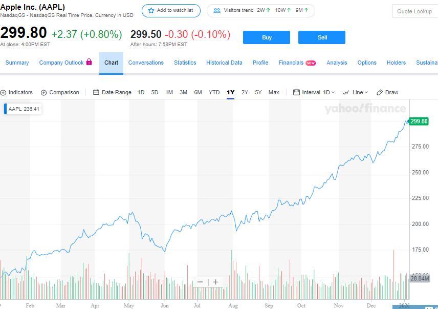 Susquehanna报告发布当天,又有投行上调苹果股票的目标价。Bernstein周一将苹果的目标股价从250美元上调至300美元。Needham将目标价从280美元提高至350美元,较苹果当天收盘价高约16.7%。