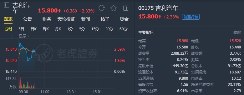 智通财经APP获悉,中金公司发布报告称,吉利汽车(00175)现价对应12.5x/10.7x 2020e/2021e P/E。该行表示,维持公司“跑赢行业”评级,维持目标价19.6港元,对应15.8x/13.4x 2020e/2021e P/E,据当前收盘价26.9%上行空间。