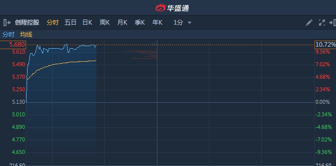智通财经APP获悉,创陞控股(02680)近日股价连续攀升创新高,暂现十连阳,累计涨幅达160%。截至10时49分,涨10.72%,报价5.68港元,成交额3438万。