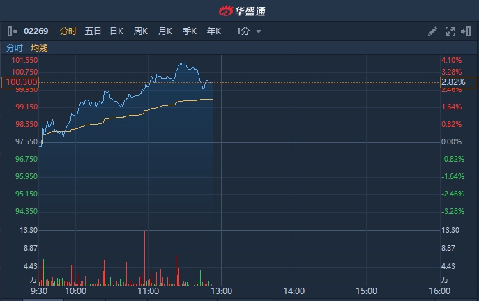 智通财经APP获悉,瑞银发表报告,首予药明生物(02269)“买入”评级,目标价120港元。受消息影响,药明生物盘中涨逾3%,截至发稿,涨2.82%,报100.3港元,成交额1.51亿港元。