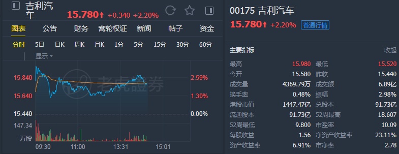 该行表示,维持吉利“买入”评级,目标价20港元。