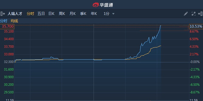 智通财经APP获悉,人瑞人才(06919)稳定价格期间结束,悉数行使超额配股权。该股尾盘飙涨逾10%,刷新上市新高,截至15时06分,涨10.53%,报价35.7港元,成交额1830万。