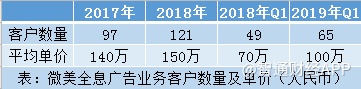 不过,全息AR广告业务表现强劲,这表现在两方面,其一是客户和平均单价的量价齐升。据招股说明书显示,微美全息的广告客户从2017年的97名增至2018年的121,且同期的平均单价从140万升至150万。至2019年第一季度时,客户数量从2018年的49增加至65,且平均单价也由70万快速提升至100万元。