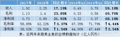 其二,全息AR广告业务推动微美全息的业绩快速增长。2018年时,微美全息的收入同比增长17.19%至2.25亿元,净利润增速21.92%,且毛利率、净利率均有所提升。