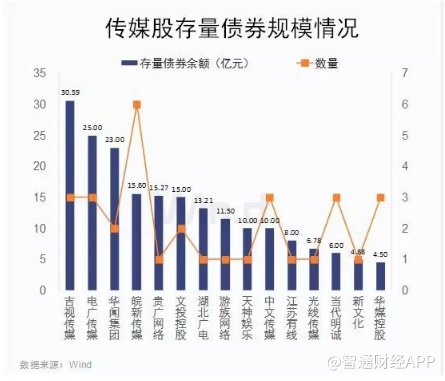 最后从债券兑付角度来看,Wind数据显示,传媒股整体存量债券并不多,目前共有25家有存量债券,合计余额为214.68亿元。其主要集中在吉视传媒、电广传媒等10家,每家存量债券余额都在10亿元以上。除了天神娱乐三季报业绩出现亏损外,其余经营都还不错。虽然后期不一定会出现兑付风险,但存量债券较多,规模较大的上市公司仍需谨慎。