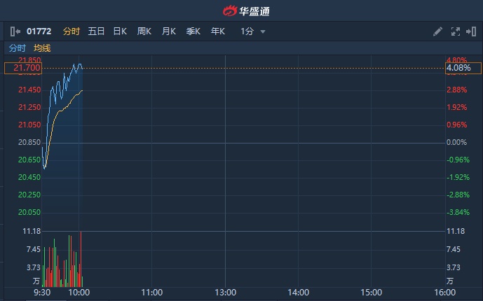 智通财经APP获悉,受外围因素影响,AH市场做多情绪低迷。然而国产特斯拉(TSLA.US)热潮仍在持续,A股赣锋锂业涨近6%。H股赣锋锂业(01772)则涨逾4%,截至发稿,涨4.32%,报21.75港元,成交额3391.32万港元。