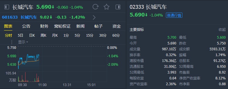 智通财经APP获悉,大和发布报告称,上调长城汽车(02333)评级及目标价,评级由“持有”升至“跑赢大市”,目标价则由6.3港元升至6.5港元。