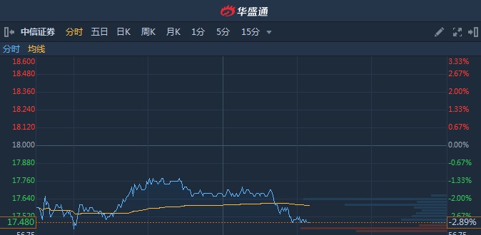 智通财经APP获悉,中信证券(06030)拟挂牌出售内港麦当劳业务22%权益,盘中股价受挫,截至14时08分,跌2.89%,报价17.48港元,成交额3.388亿。