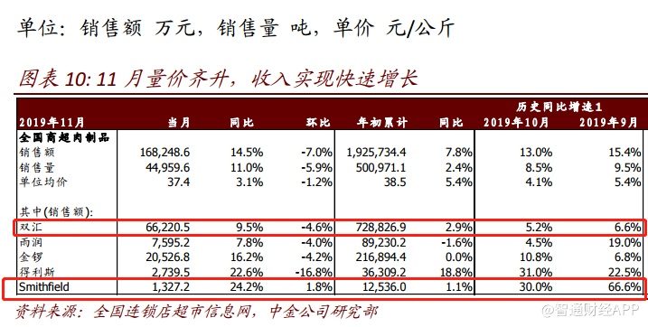 肉制品11月收入增长保持14.5%的较快增长,量价齐升。双汇收入增长稳中有升,雨润、金锣环比降速。
