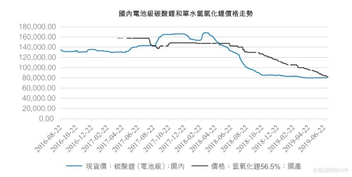 2019年以来,虽然主要锂化合物价格仍然呈下跌趋势,但是碳酸锂跌幅逐渐趋缓,氢氧化锂价格有较为明显的回落。