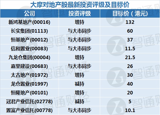 一、大摩对地产股最新投资评级及目标价