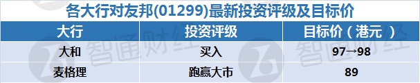 三、各大行对友邦(01299)最新投资评级及目标价